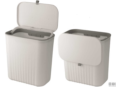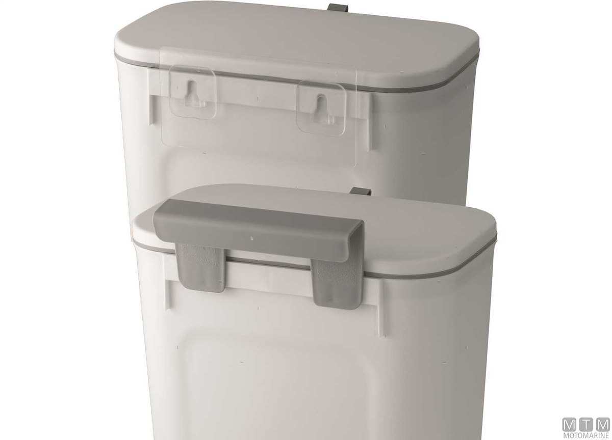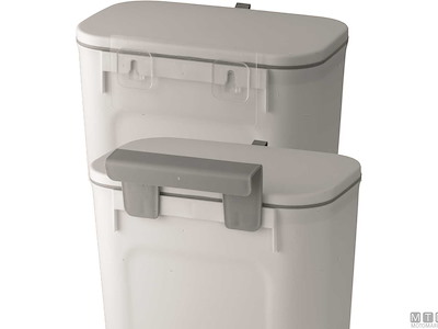 Cestino compatto in Polipropilene con cornice interna porta sacchetto e doppia modalità di apertura che permette di tenere il cestino sempre aperto oppure sempre chiuso. Montaggio senza fori o viti con forte gancio adesivo in dotazione.