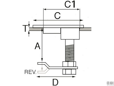 Chiusura a compressione in Acciaio Inox 316 con leva regolabile. Per aprire e chiudere paglioli e boccaporti. Completa di leva dritta e angolata che può essere montata in posizione normale oppure girata (Rev) per coprire tutti gli spessori (A) richiesti.