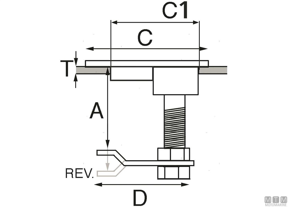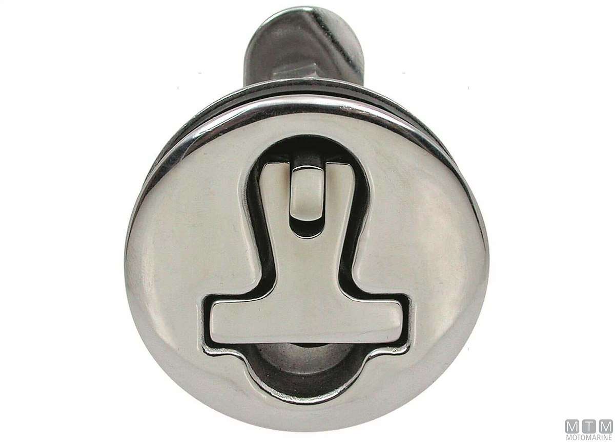 Chiusura a compressione tonda in Acciaio Inox con leva regolabile. Piastra a vista senza fori vite, montaggio con viti dall'interno. Per aprire e chiudere paglioli e boccaporti.