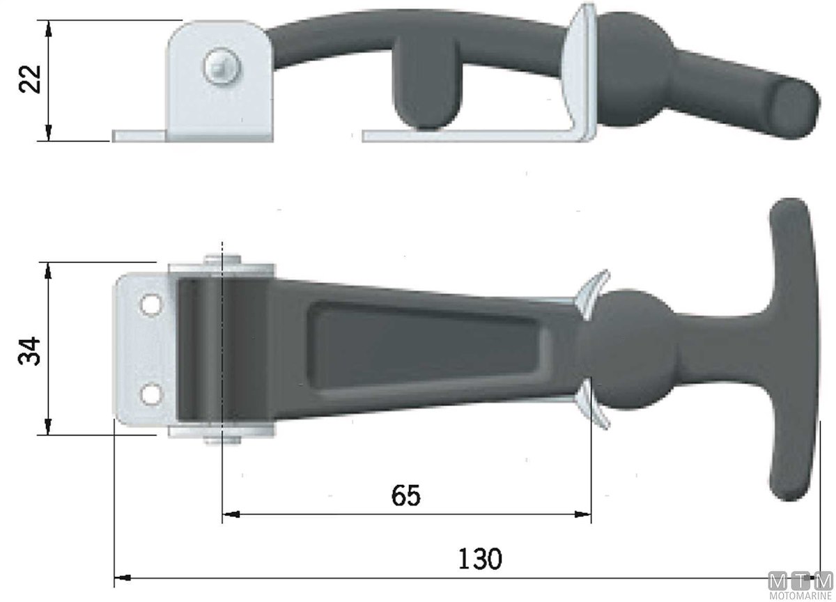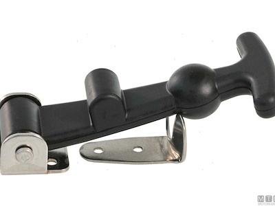 Chiusura a leva Roca in elastomero termoplastico con componenti antigelo e base di attacco in Acciaio Inox. Ideale per portelli, cassoni e ghiacciaie.