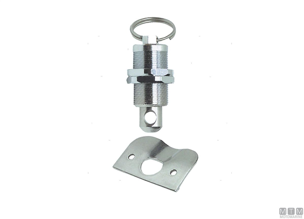 Chiusura a spinta in Acciaio Inox per gavoni. Pulsante a molla con anello e foro portalucchetto.