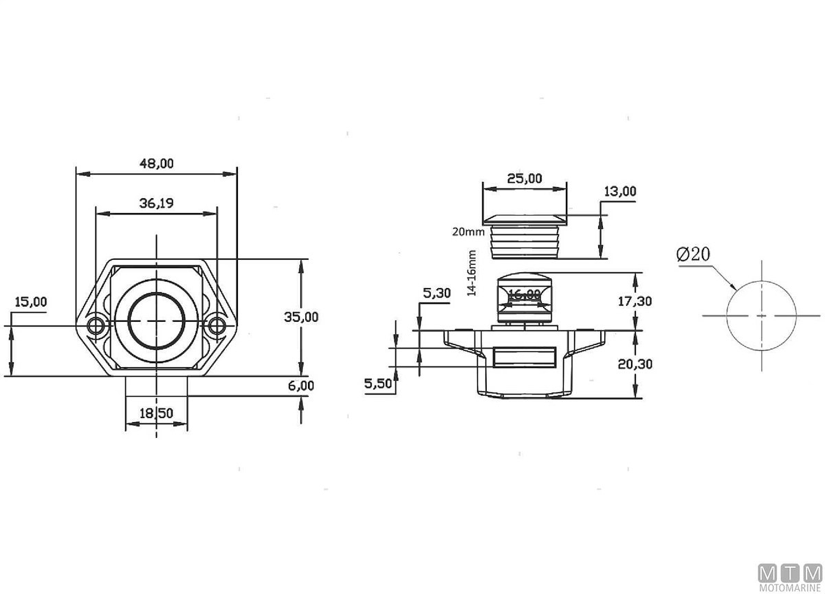ø Foro mm: 20