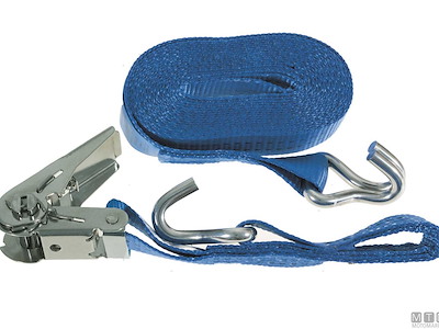Cinghia tensionatrice con cricchetto e ganci in Acciaio Inox e nastro in Poliestere ad alta tenacitĂ . Ideale per il fissaggio di qualsiasi carico su imbarcazioni, ponti, stive, carrelli e automezzi. Certificata CE EN12195/2.