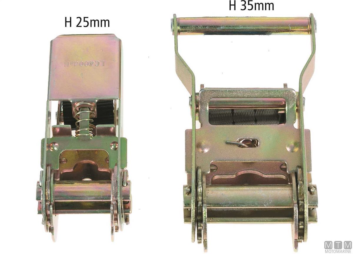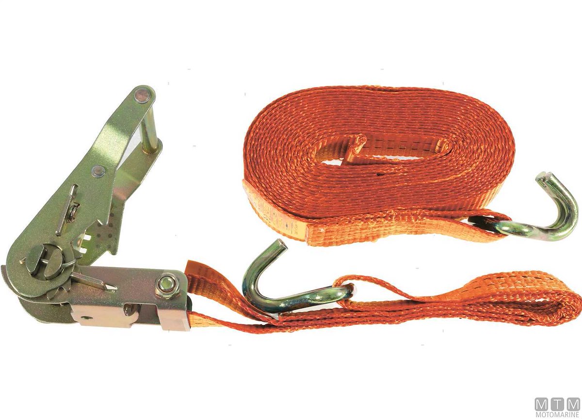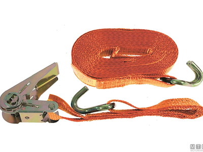 Cinghia tensionatrice con cricchetto e ganci in Acciaio Cadmiato e nastro in Poliestere ad alta tenacitĂ . Ideale per il fissaggio di qualsiasi carico su imbarcazioni, ponti, stive, carrelli e automezzi. Certificata CE EN12195/2.