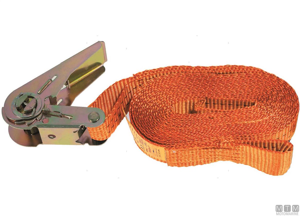 Cinghia tensionatrice con cricchetto in Acciaio Cadmiato e nastro in Poliestere ad alta tenacitĂ . Ideale per il fissaggio di qualsiasi carico su imbarcazioni, ponti, stive, carrelli e automezzi. Certificata CE EN12195/2.