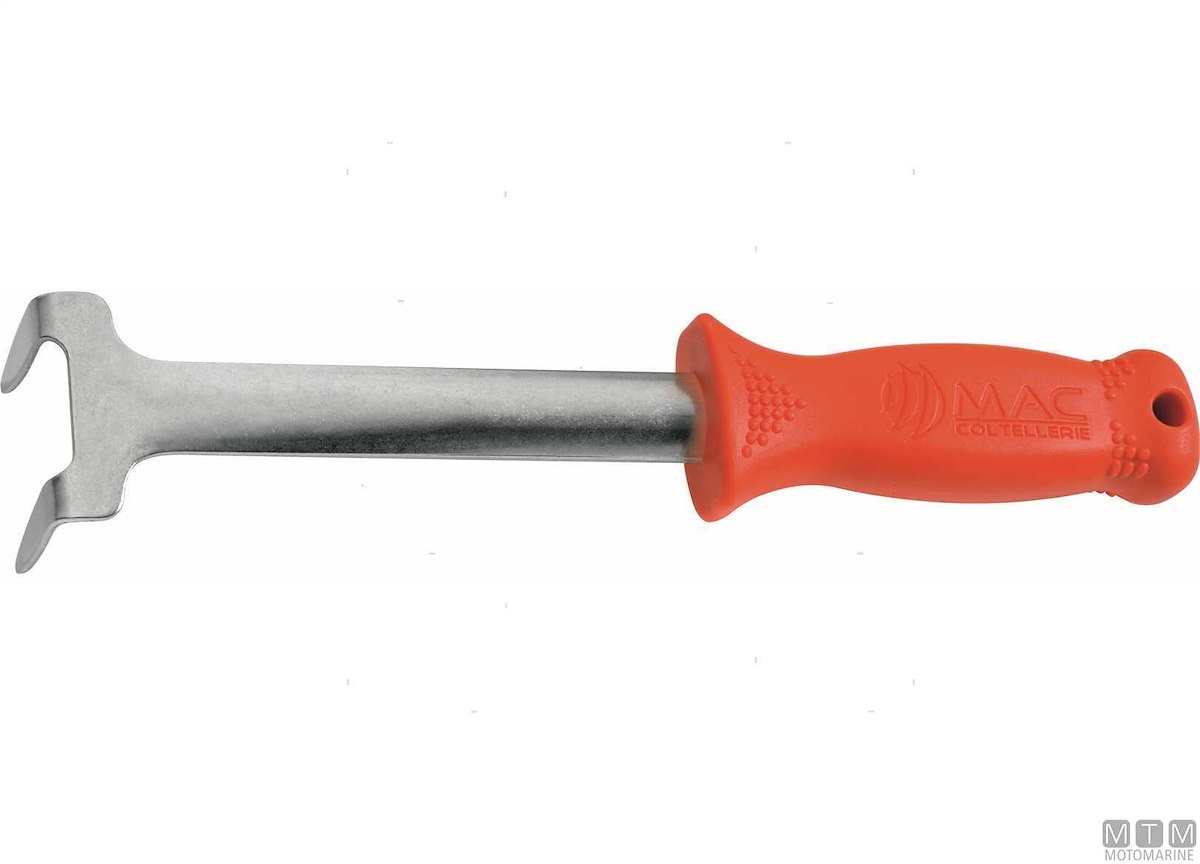 Attrezzo per cogliere ricci e qualsiasi mollusco da scoglio. Manico in PP, aggancio in Acciaio Inossidabile W1.4301.