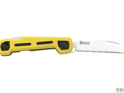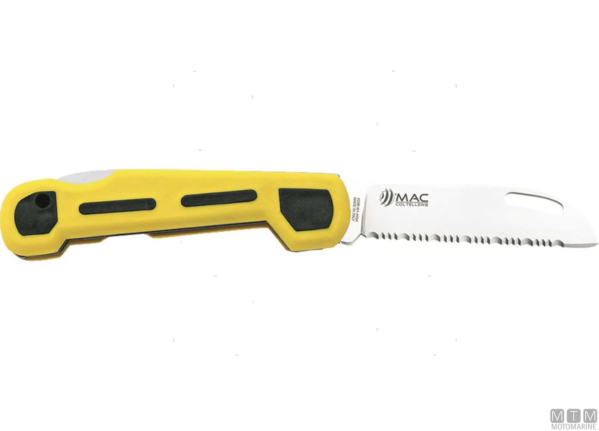 Coltello a serramanico con bloccalama e apribottiglia.Manico in mescola PP/TPE, lama in Acciaio Inossidabile W1.4034.