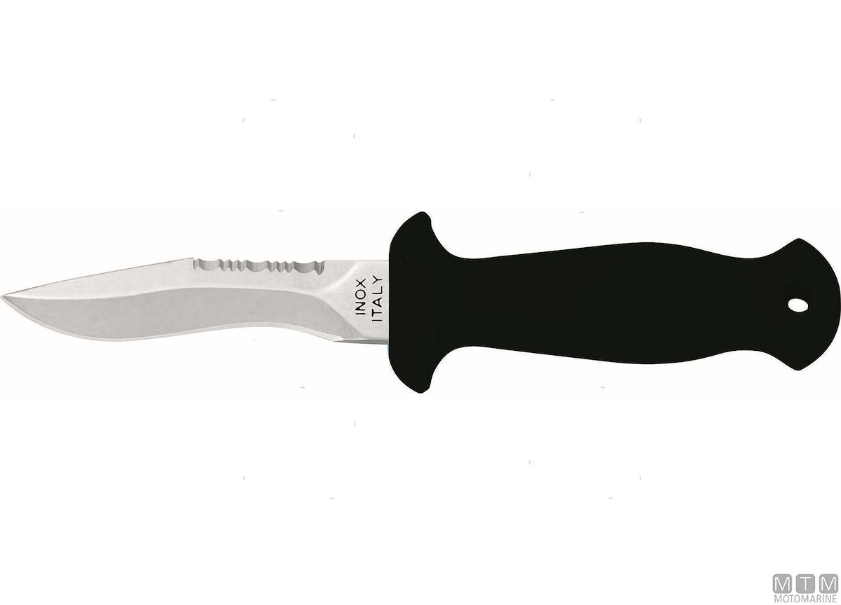 Coltello Sub compatto classico. Completo di fodero e cinghie. Lama in Acciaio Inossidabile W1.4116. Dopo l'uso sciaquare la lama con acqua dolce e ingrassarla.