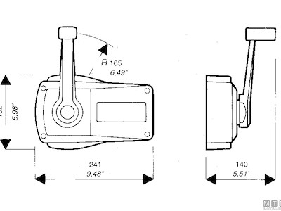 Comando monoleva a doppia azione a montaggio esterno a paratia per il controllo di gas e marce su motori fuoribordo ed entrobordo. Utilizzano cavi C2 / C8 / C33 / MACHZero. Per i cavi C5 serve il kit K35 (4620035). Mediante l'interruttore di sicurezza opzionale X12 (4620112) l'avviamento del motore si ottiene solamente con la marcia in posizione di folle.Dotato di un dispositivo di blocco della leva nella posizione di folle che impedisce manovre accidentali.