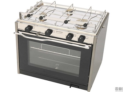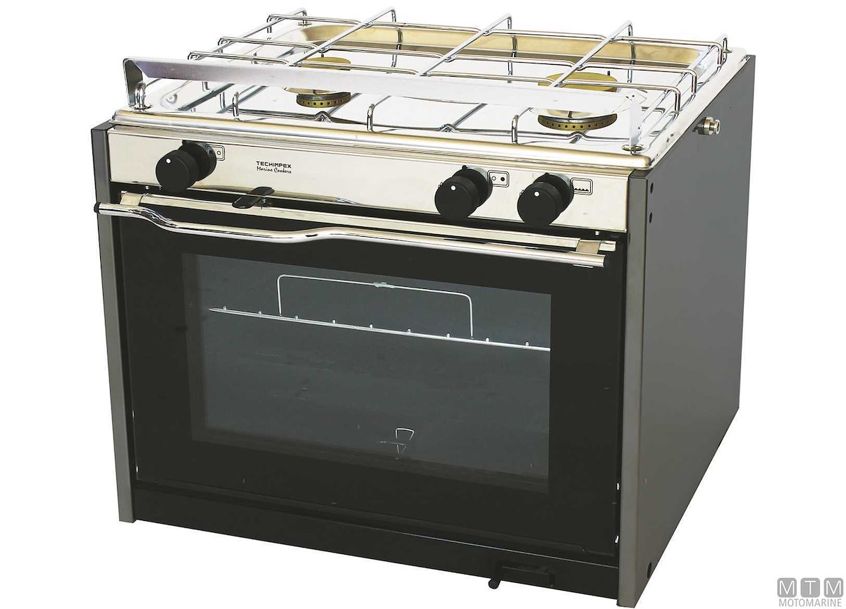 Tropea XL: cucina a 2 fuochi con forno di grandi dimensioni e bruciatore forno centrale ultraperformante. Potenza singolo bruciatore 2000W, forno 1700W.