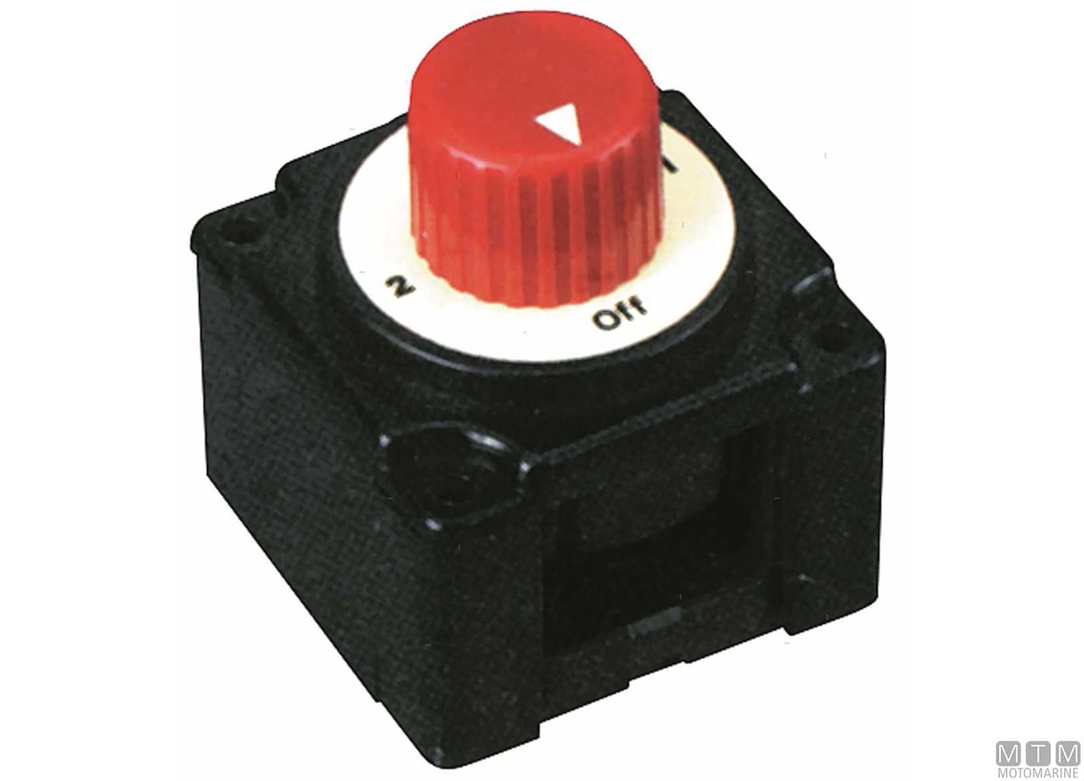 Deviatore staccabatterie compatto a quattro posizioni. Permette di staccare il circuito, di selezionare una delle due batterie oppure entrambe in contemporanea. Si monta esterno o a incasso.