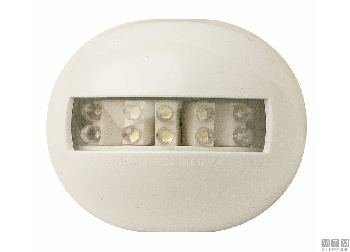 Fanale di navigazione LED da poppa con cassa in Plastica stagna IP67. A normativa CE/IMO/COLREG 72/ABYC/NMMA. Dimensioni: 74 x 62 x H40 mm.