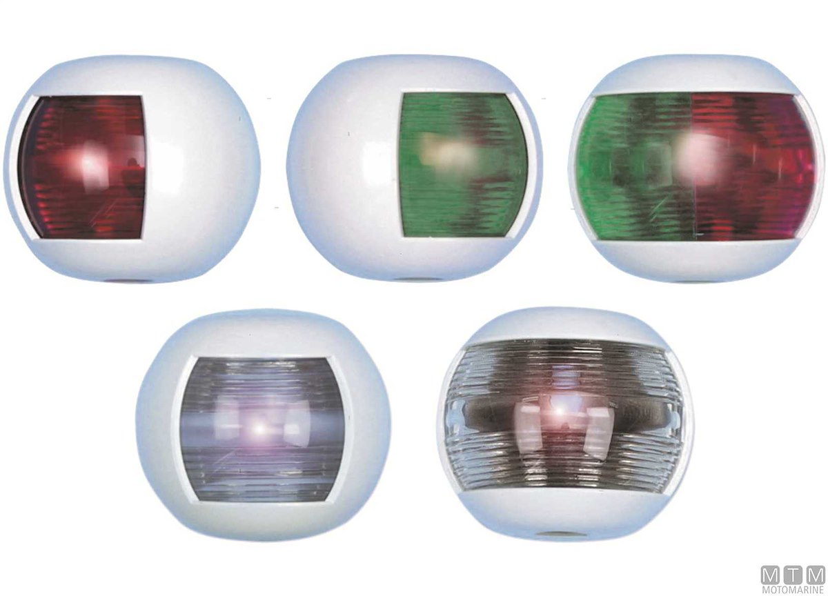 Fanali di navigazione LED compatti piatti con corpo in Plastica bianca. Certificati R.I.Na. e adatti per imbarcazioni fino a 12 metri.Dimensioni 70 x H63 mm.