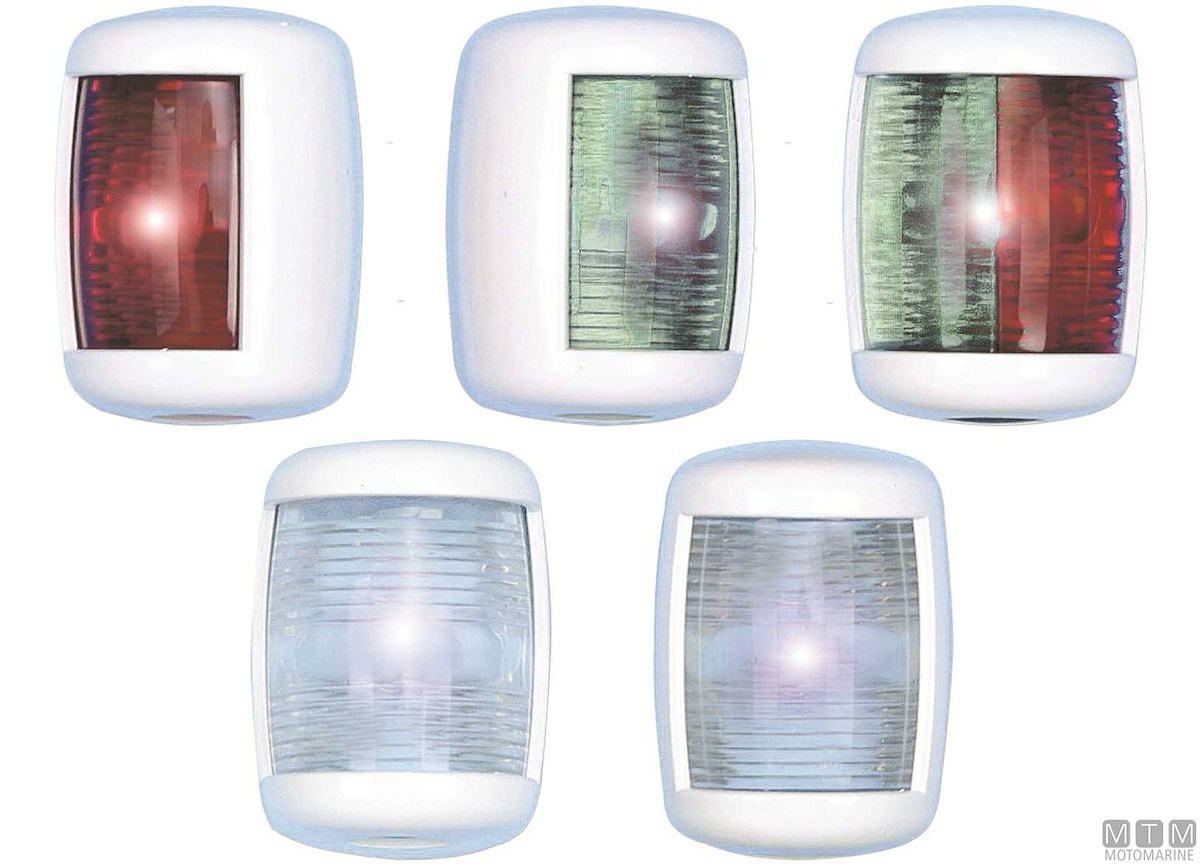 Fanali di navigazione LED compatti in Plastica bianca. Certificati R.I.Na. e adatti per imbarcazioni fino a 12 metri.Dimensioni 42 x H61 mm.