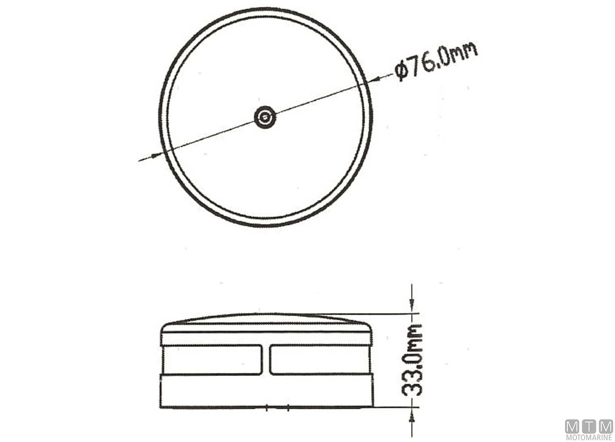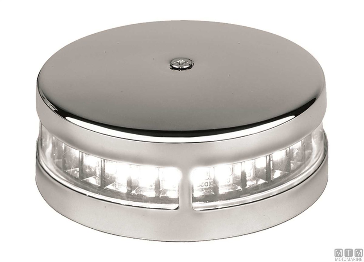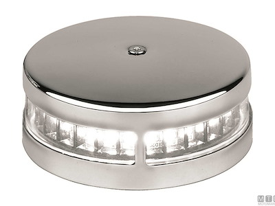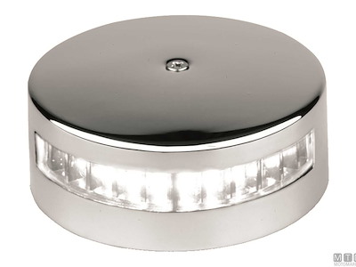 Fanali LED di navigazione 10-30V in Acciaio Inox per montaggio su coperta per imbarcazioni fino a 12 metri. Certificati CE.Dimensioni: D76 x H34 mm.