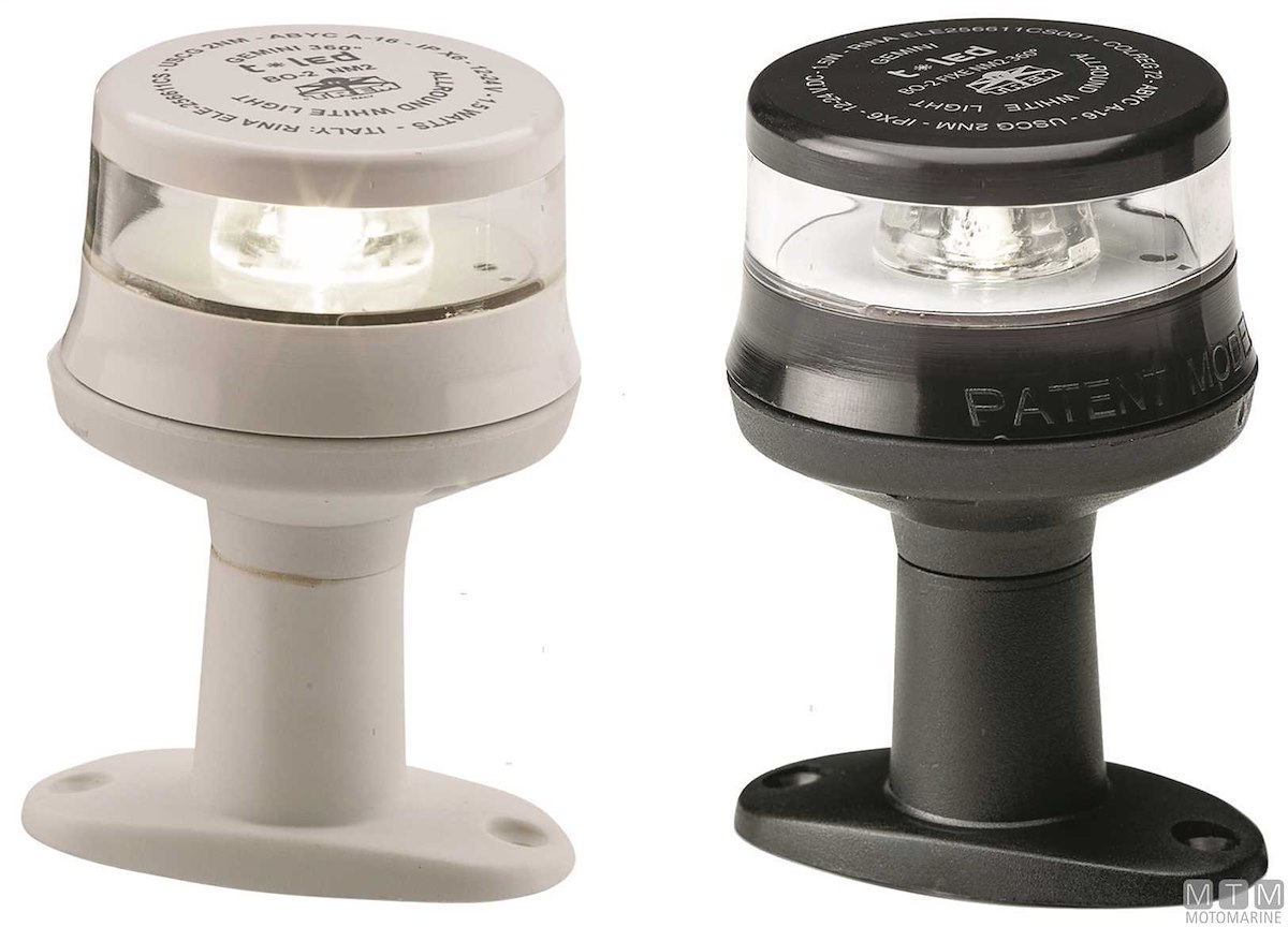 Fanali di testa albero 360° LED 12/24V con base stretta per montaggio su piano.