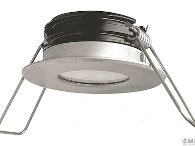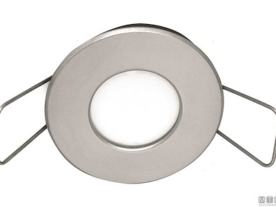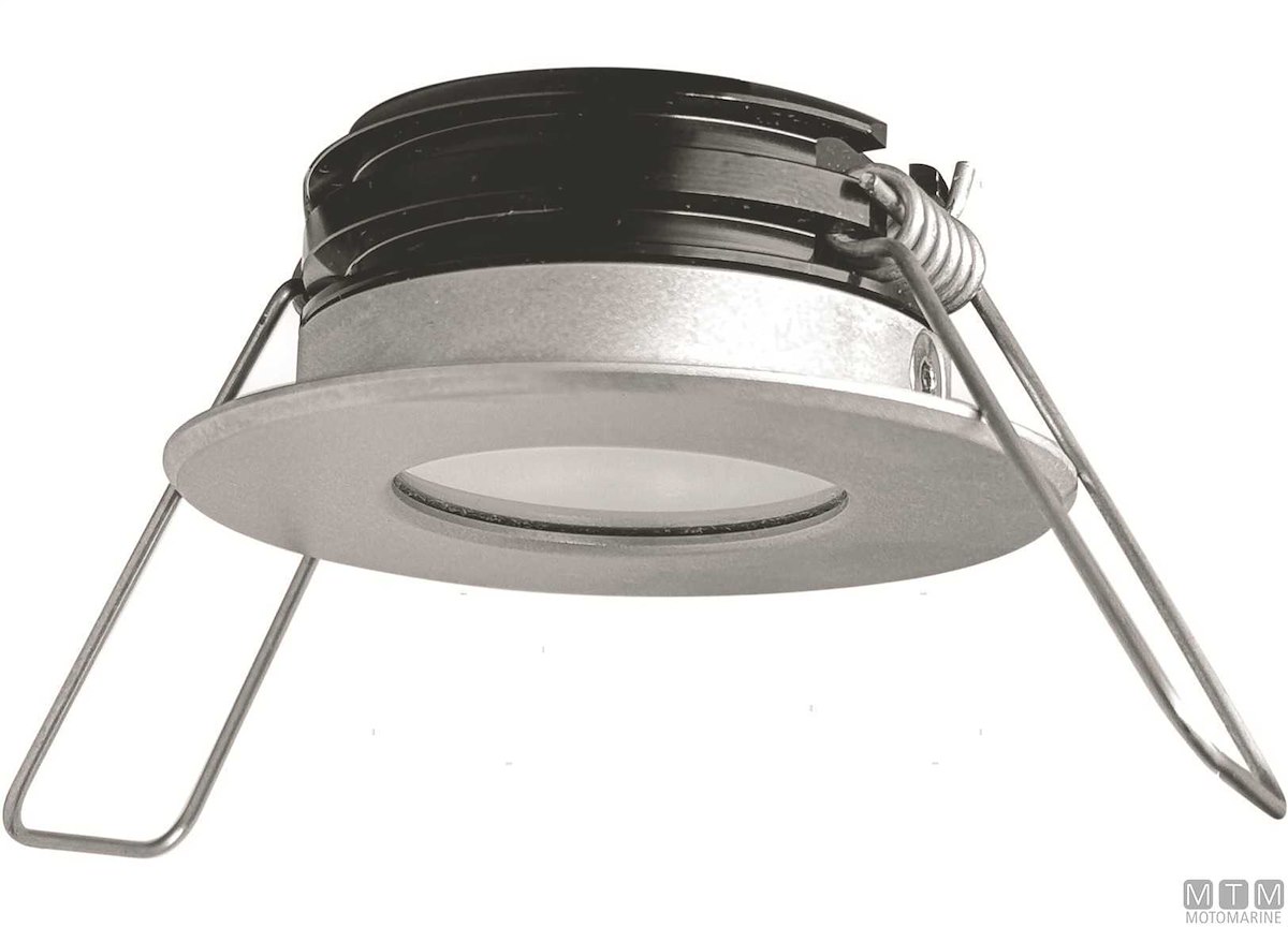 Faretto LED impermeabile IP65 per interni ed esterni con cornice in Acciaio Inox satinato e lente in Policarbonato HG. Montaggio ad incasso con molle, voltaggio universale 12-24V con dimmer digitale integrato nel circuito, protezione da surriscaldamento, picchi e inversione di polarità. Luce intensa con un consumo di soli 4,5W(12V).
