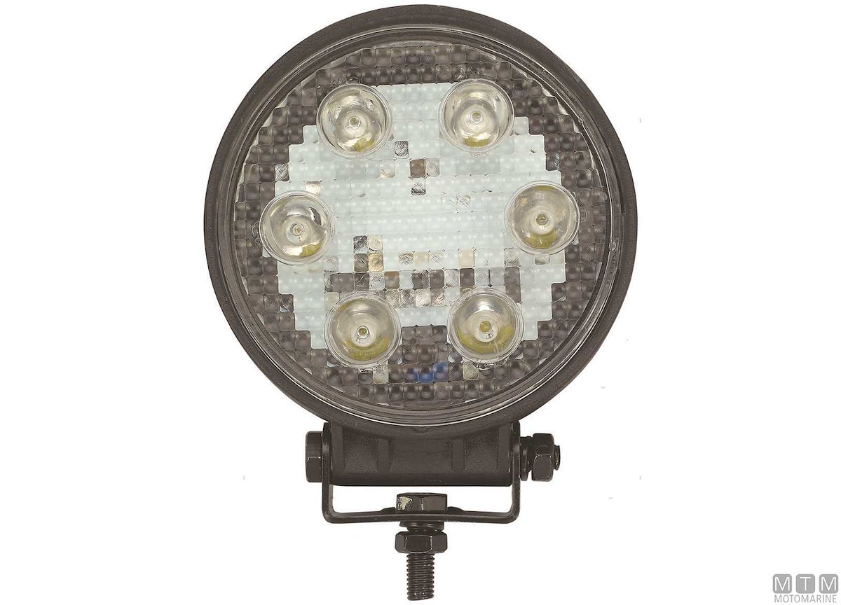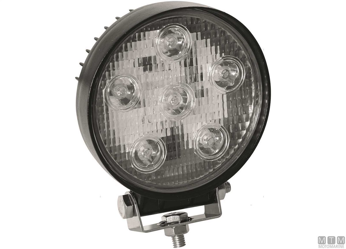 Faretto LED 10-30V da coperta e pozzetto impermeabile IP67 con corpo in lega di Alluminio resistente alla corrosione e staffa in Acciaio Inox. Luce bianca 6200°K concentrata, consumo 18W.