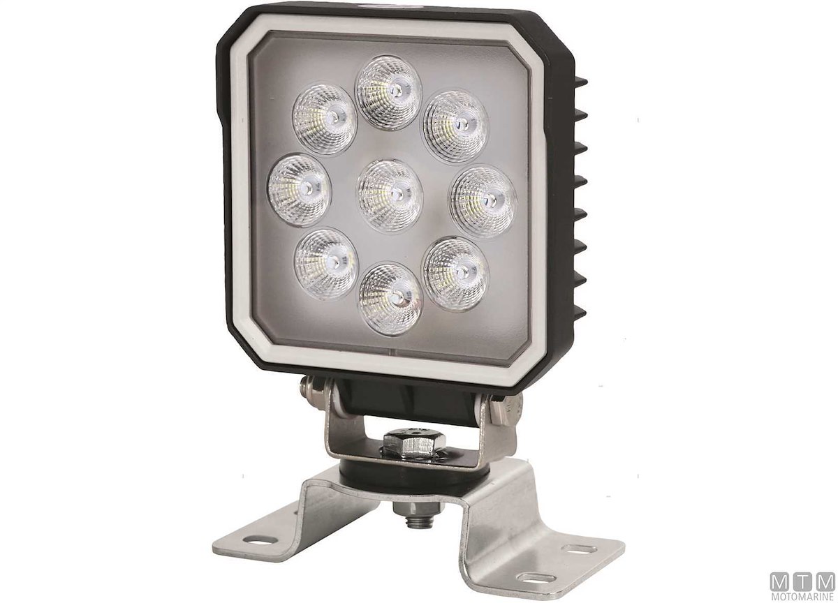 Faretto da coperta e da pozzetto impermeabile IP67. Bulbo con 9 LED Osram a luce diffusa da 3W. Cassa in lega di Alluminio resistente alla corrosione con staffa in Acciaio Inox.Voltaggio 9-32V. Potenza 27W. Lumen 2430.Completo di base in Acciaio Inox, guarnizione a frizione antivibrante e viteria Inox.