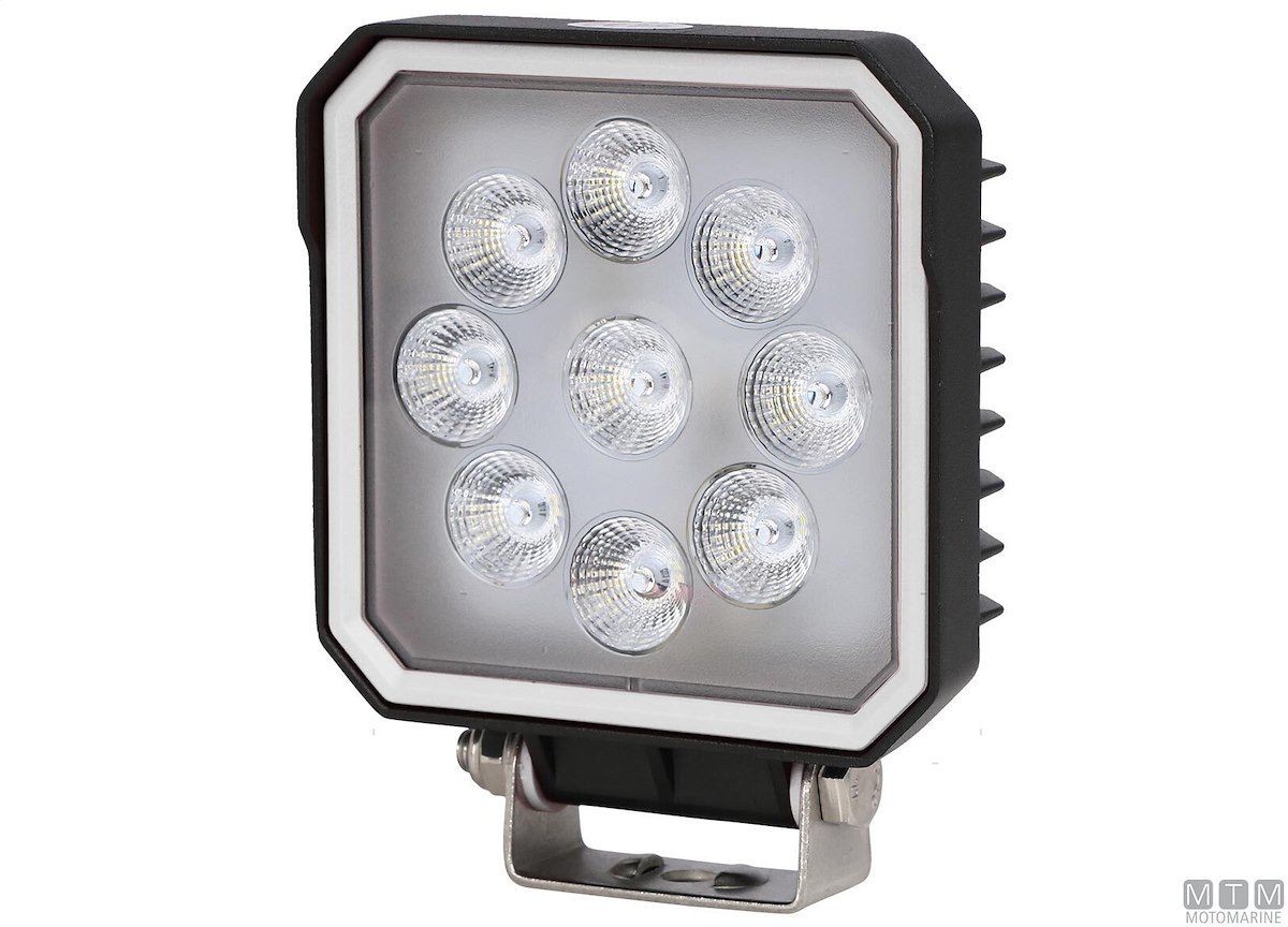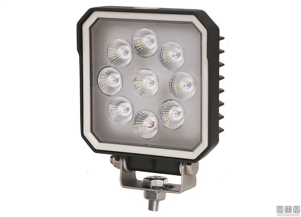 Faretto da coperta e da pozzetto impermeabile IP67. Bulbo con 9 LED Osram a luce diffusa da 3W. Cassa in lega di Alluminio resistente alla corrosione con staffa in Acciaio Inox.Voltaggio 9-32V. Potenza 27W. Lumen 2430.