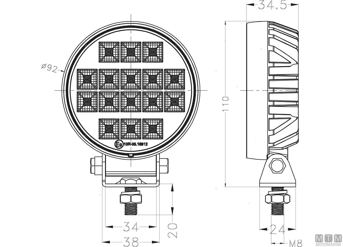 Voltaggio 9-32V. Potenza 16W. Lumen 1200. Luce bianca 6000°K.