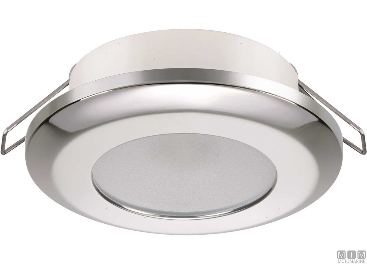 Faretto LED 2W IP40 per interni con cornice in Acciaio Inox AISI316. Montaggio ad incasso con molle. Voltaggio universale 9-32V con LED dimmerabile protetto da picchi e inversione.