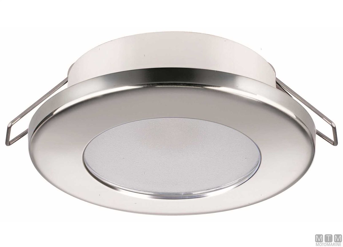 Faretto LED 2W IP40 per interni con cornice in Acciaio Inox AISI316. Montaggio ad incasso con molle. Voltaggio universale 9-32V con LED dimmerabile protetto da picchi e inversione.