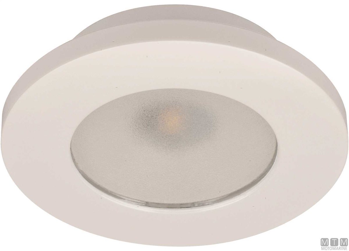Faretto LED 2W IP66 per interni ed esterni con cornice in composito bianco. Montaggio ad incasso con viti. Voltaggio universale 9-32V con LED dimmerabile protetto da picchi e inversione.