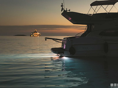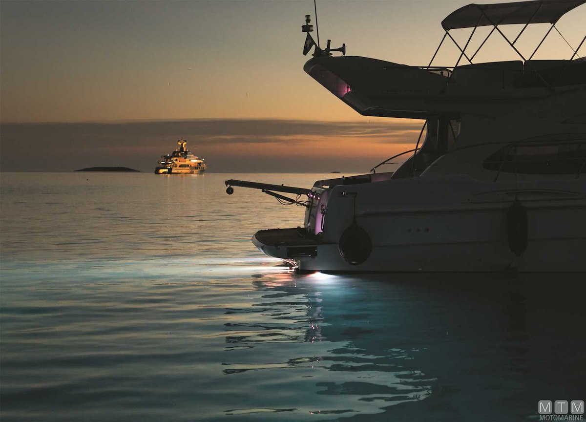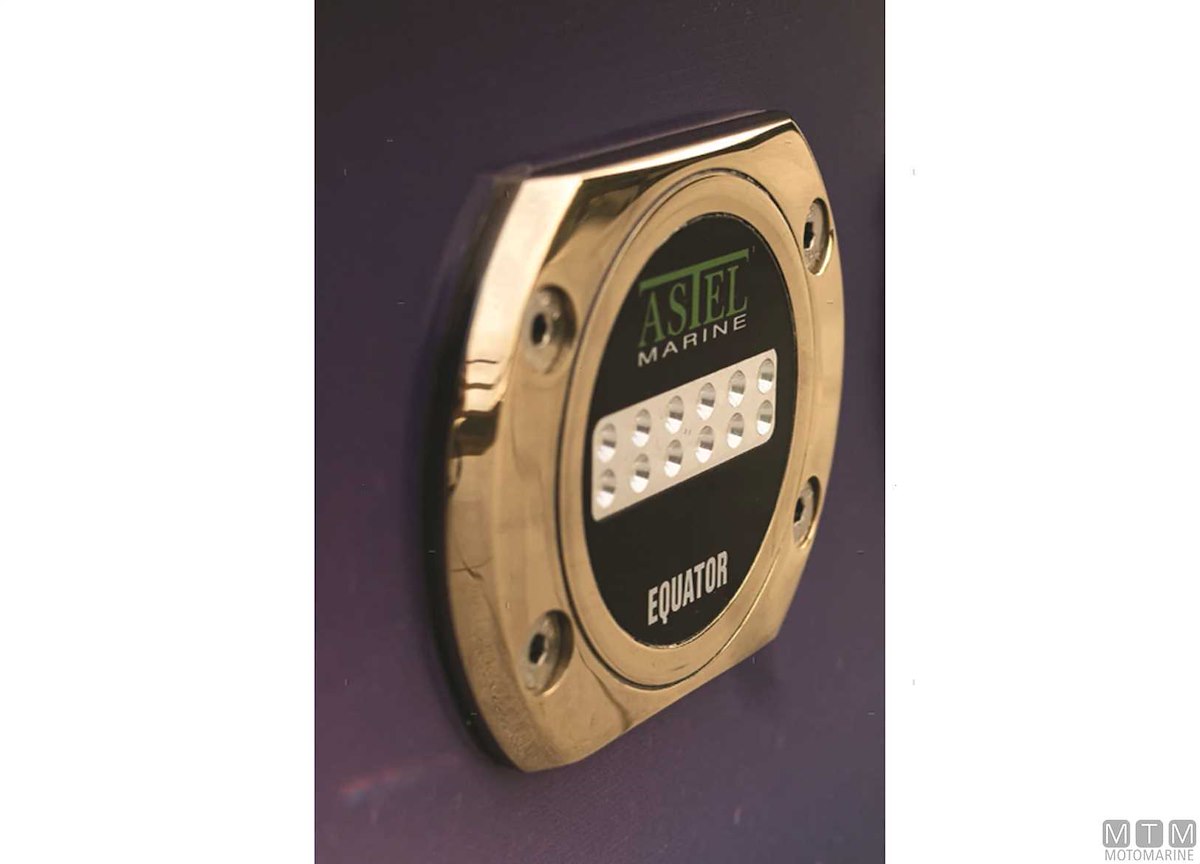 Installazione semplice sotto la linea di galleggiamento con foro alimentazione 10 mm e 4 viti M6x80 mm.