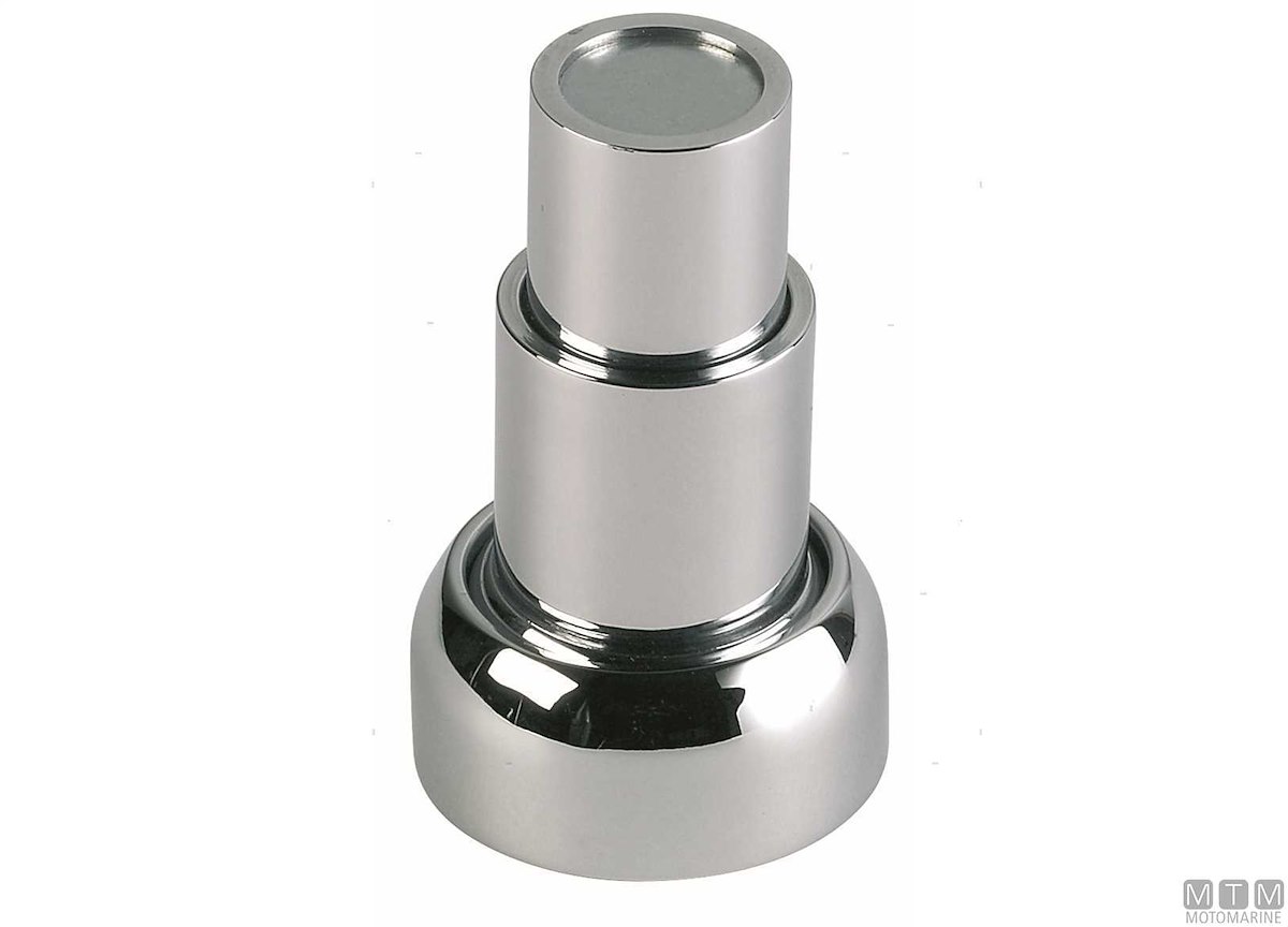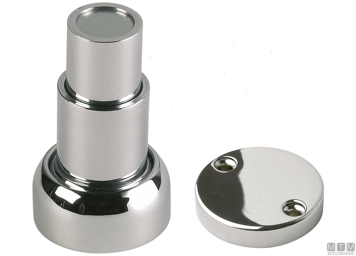 Ferma porte e portelli magnetico a calamita in Ottone Cromato con corpo orientabile fino a 20°. Completo di piastrina di riscontro.