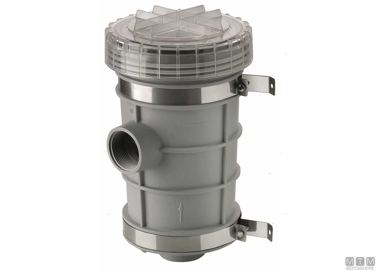 Filtro acqua di mare Vetus FTR1320 in Polipropilene con staffe in Acciaio Inox regolabili. Per pompe e raffreddamento motori.