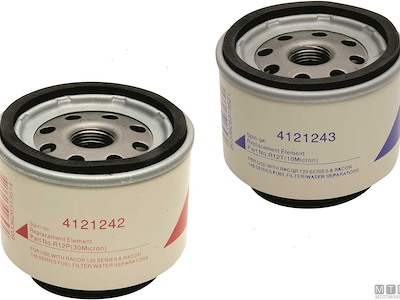 Filtro gasolio Sacs con coppa trasparente e spurgo. Fornito di serie con cartuccia da 30 micron. Elevata capacità di separazione acqua/gasolio. Può sostituire per dimensioni il filtro Racor 120A. Le cartucce possono sostituire per dimensioni le cartucce Racor R12P e R12T.