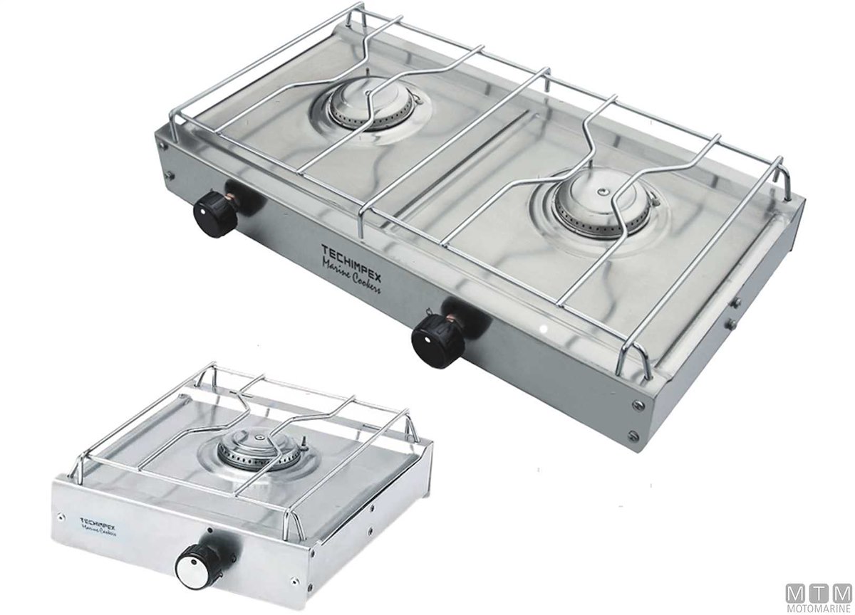 Fornelli Techimpex ad appoggio leggeri e compatti in Acciaio Inox. Completi di termocoppia e griglia con blocco a pressione. Fornello a 1 fuoco Capri potenza bruciatore: 1600W. Fornello a 2 fuochi Ponza potenza bruciatori: 2000W.