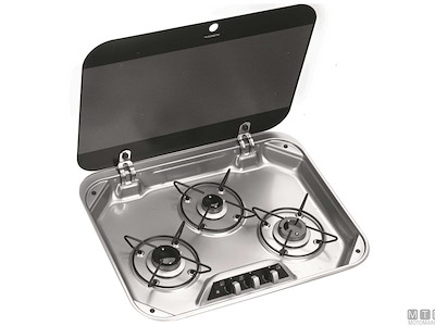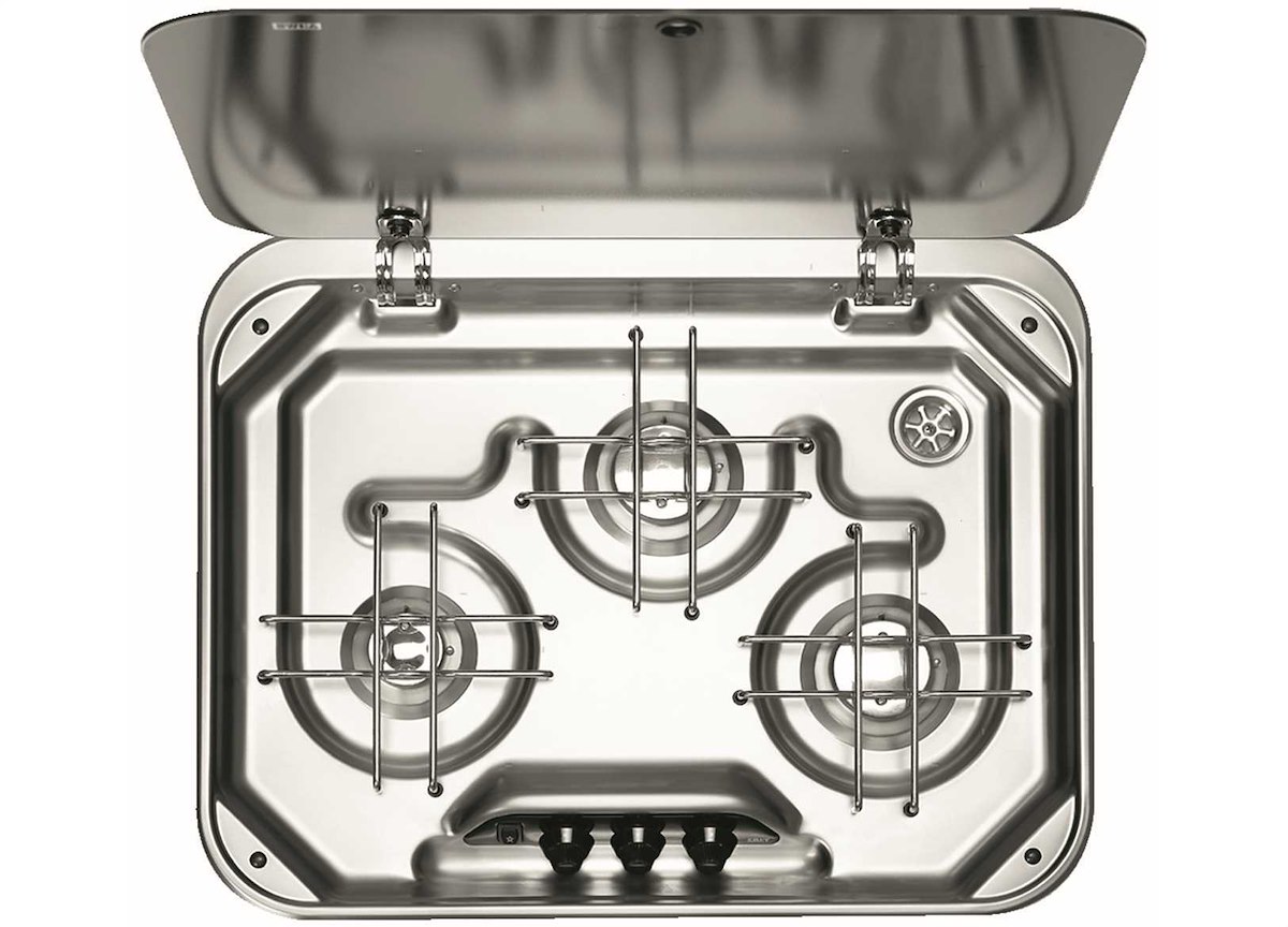 Fornelli a incasso in Acciaio Inox satinato completi di termosicurezza e coperchio in Cristallo Temperato.