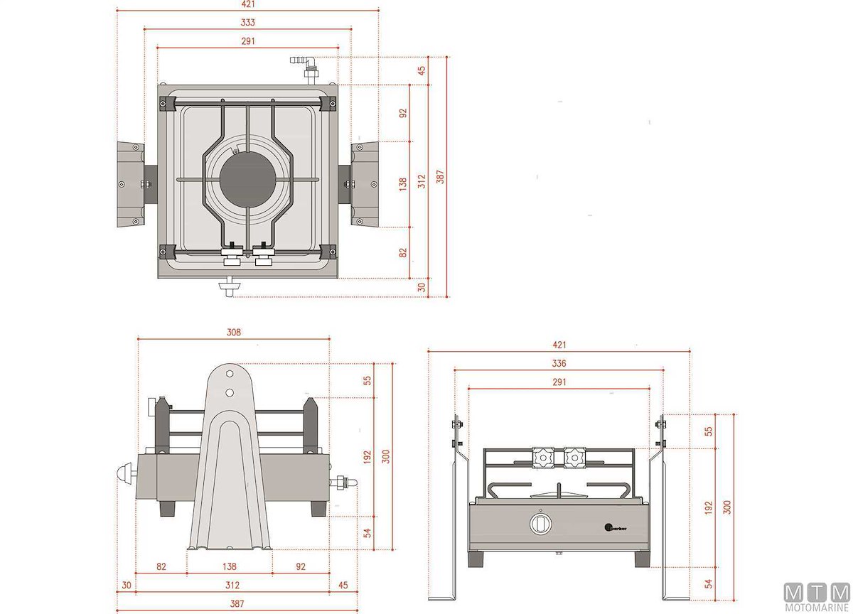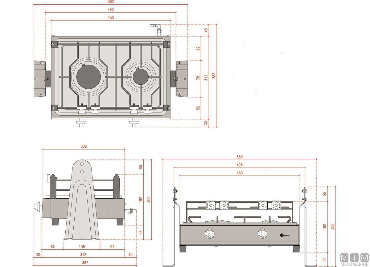 Fornelli nautici in Acciaio Inox completi di termocoppia di sicurezza, griglia, fermapentole e basculante integrato. Potenza bruciatori 1500/2500W.