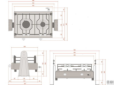 FORNELLO 2 FUOCHI CON CARDANO PARKER IN ACCIAIO INOX