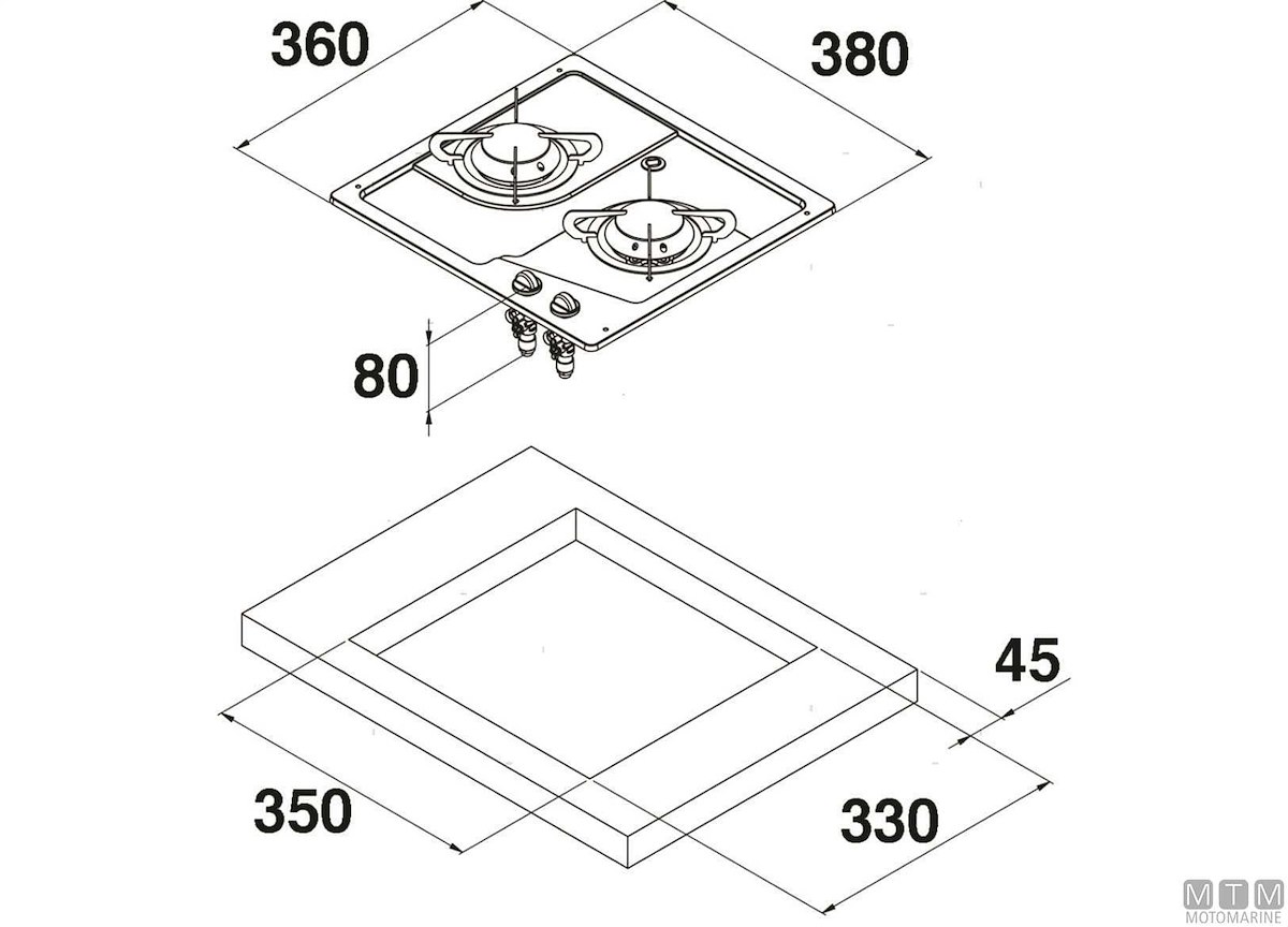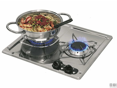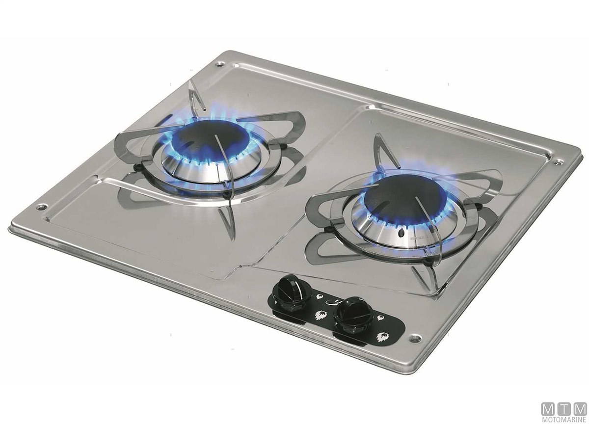 Fornello a incasso a 2 fuochi con piano in Acciaio Inox lucido e termosicurezze.