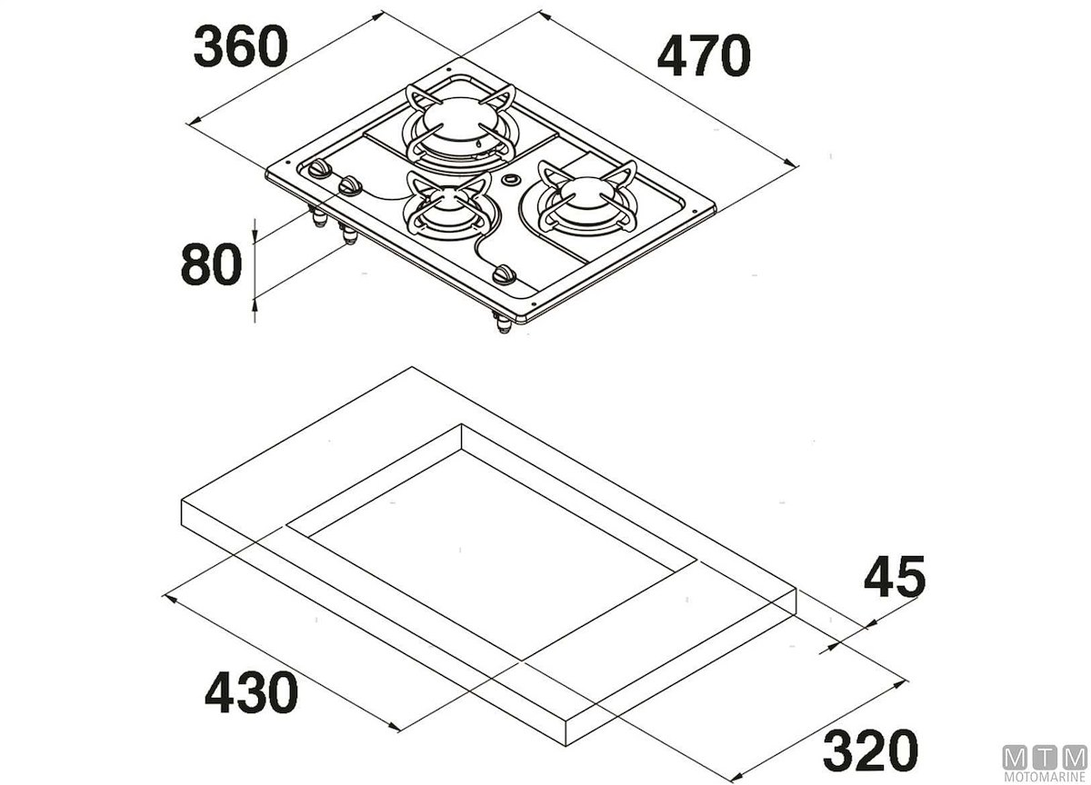 Caratteristiche FORNELLO BURNY 3 FUOCHI 530x380