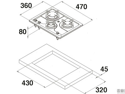 Dimensioni incasso: 430 x 320 x H80 mm.