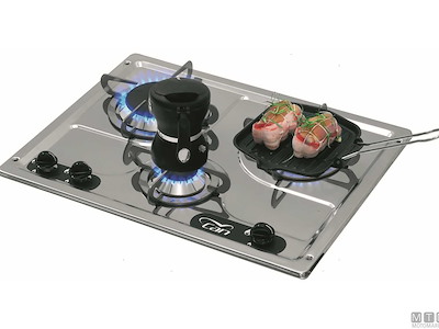 Fornello a incasso a 3 fuochi con piano in Acciaio Inox lucido e termosicurezze.