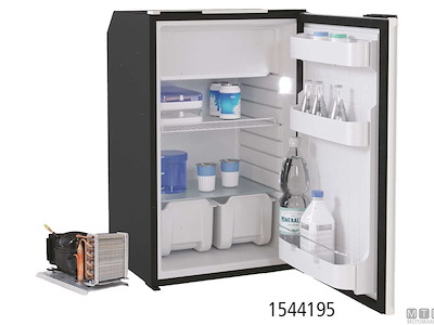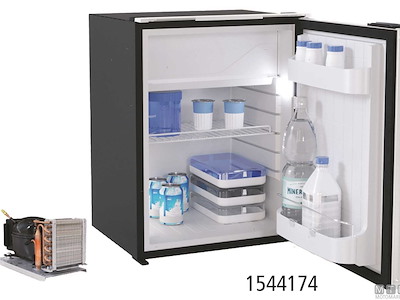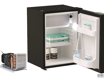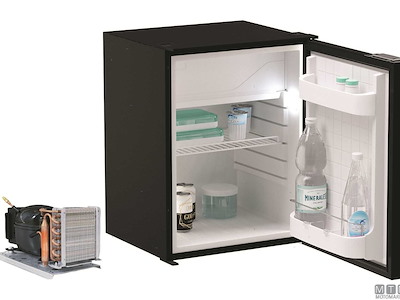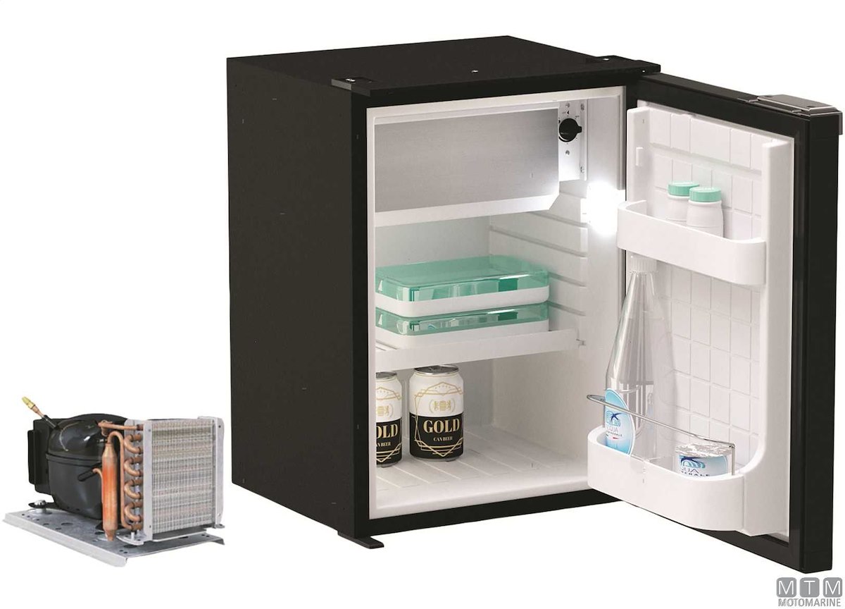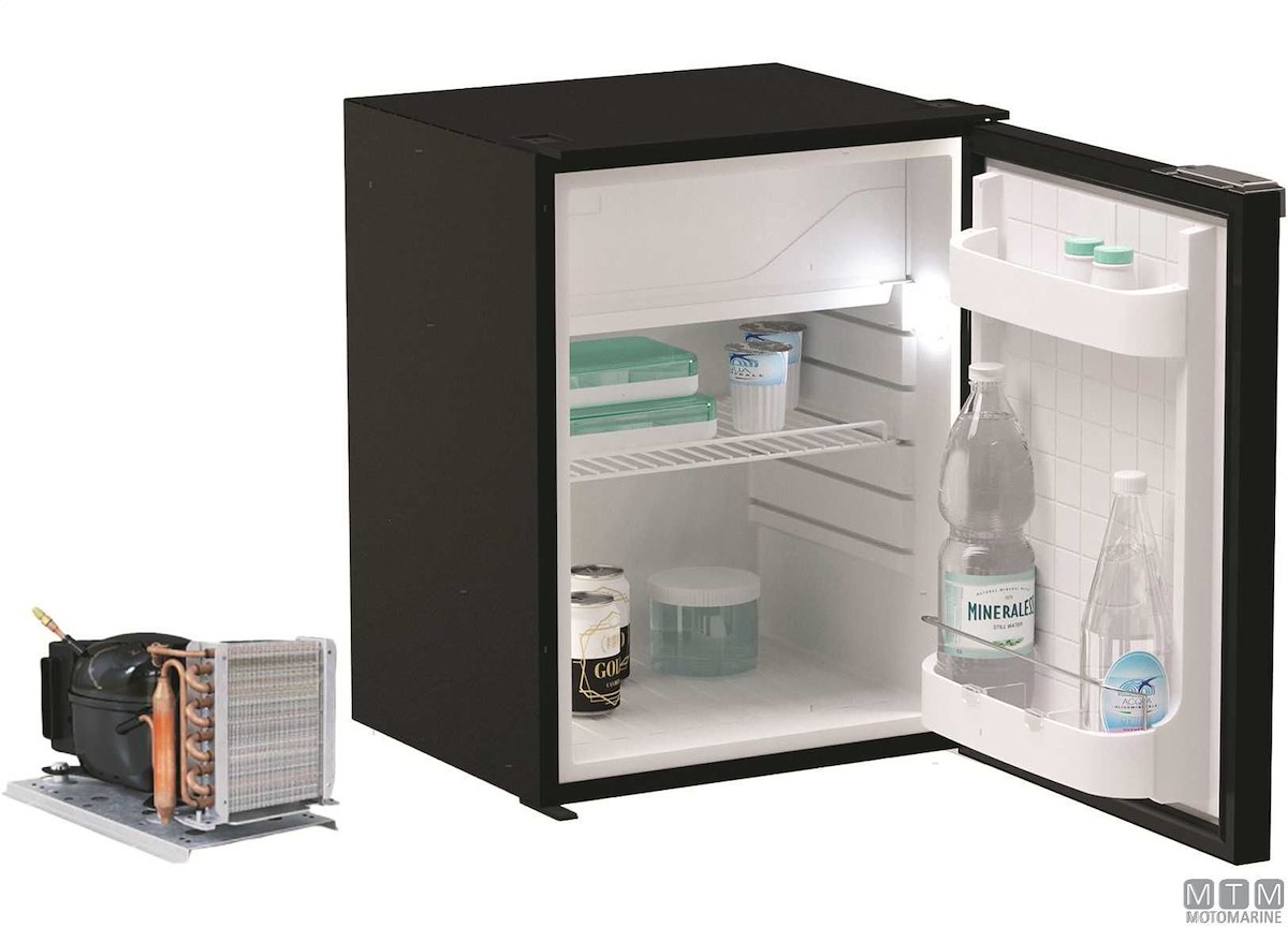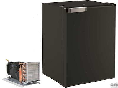 Frigoriferi Vitrifrigo con unità refrigerante Danfoss 12/24V esterna remotizzabile fino a 1,5 metri ed apertura a porta reversibile con posizione di ventilazione per periodi di non utilizzo. Completi di luce LED e di termostato meccanico. Variante con porta grigia o nera.