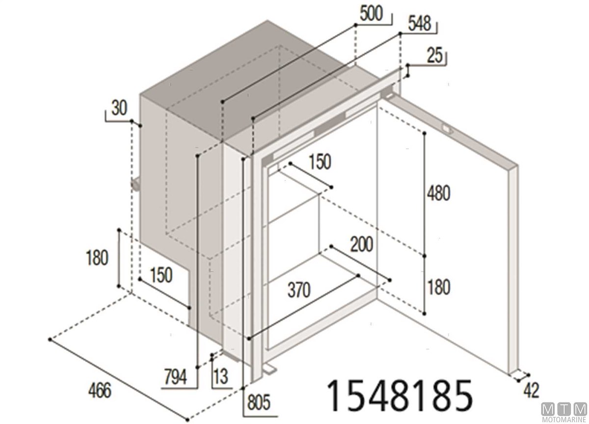 Frigoriferi Vitrifrigo con struttura esterna in Acciaio Inox, unità refrigerante interna Danfoss 12/24V ed apertura a porta reversibile con posizione di ventilazione per periodi di non utilizzo. Completi di luce LED, termostato meccanico e profilo a scorrimento per installazione standard oppure a incasso con porta a filo.