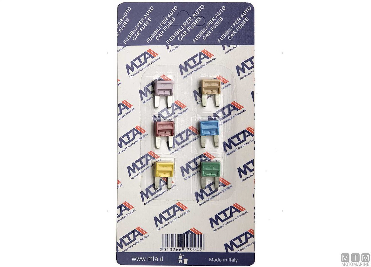 Fusibili lamellari tipo Minival in blister. Contiene un fusibile di: 3A/5A/7,5A/10A/15A/20A/30A