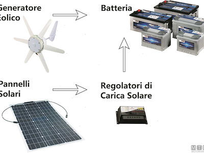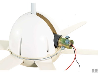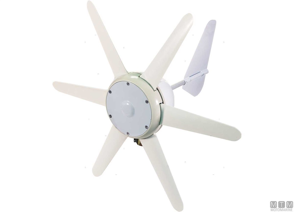 Generatore eolico 12V, completo di controller di tensione integrato grazie al quale lo si può collegare direttamente alla batteria. Potenza in uscita 90 Watt a pieno regime. 6 pale in fibra di vetro rinforzata e corpo in plastica resistente all'acqua IP65. Intervallo funzionamento vento: 3,6 km/h - 120 km/h. Da montare su tubo da 45 mm.