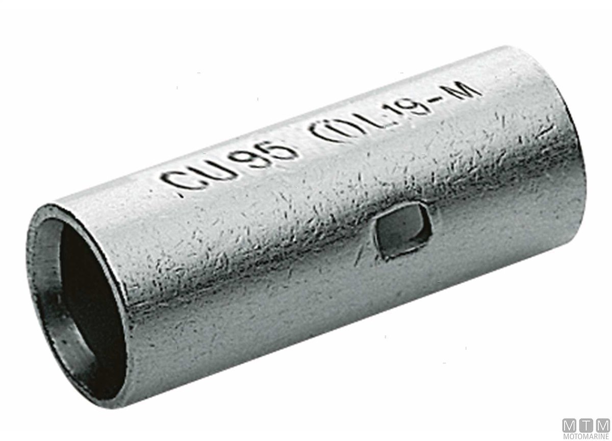 Giunti testa-testa non isolati per cavi batteria. Protetti contro la corrosione mediante stagnatura elettrolitica. Resistenti alle sollecitazioni meccaniche grazie al processo di ricottura. Con smusso e stop nella parte centrale per un corretto posizionamento del cavo.