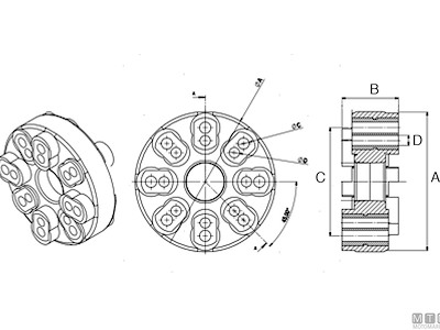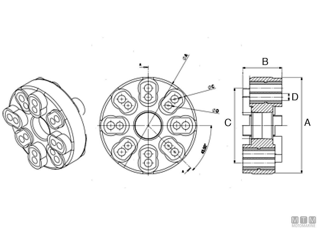 Giunto elastico 16 fori per flange di accoppiamento tra asse elica e invertitore.