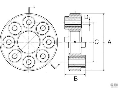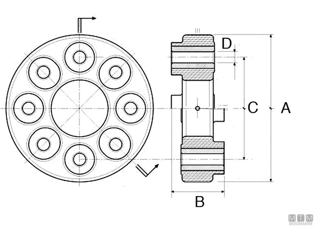 Giunto elastico 8 fori per flange di accoppiamento tra asse elica e invertitore.