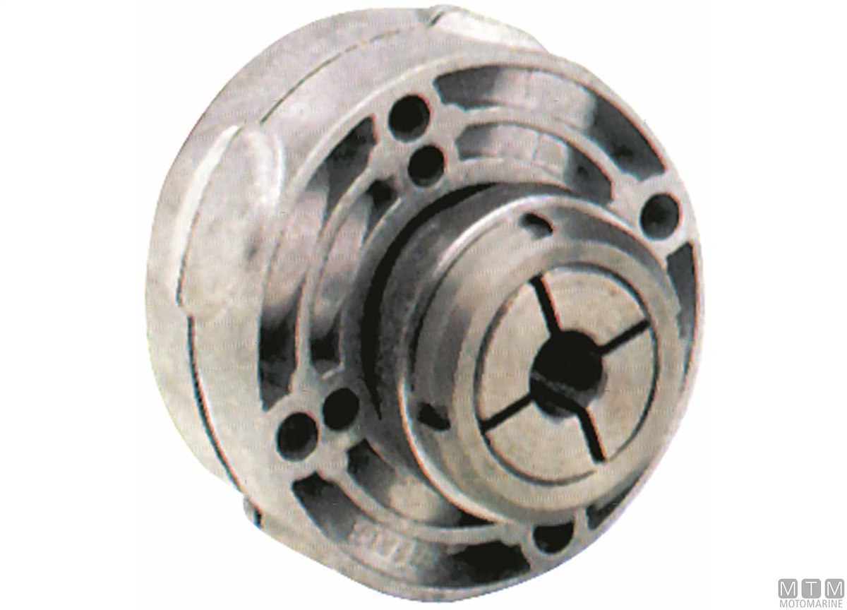 Giunto di accoppiamento elastico Vetus Type 6 con speciale mozzo di serraggio conico per un perfetto montaggio concentrico. Con attacco da 4"/5" per invertitori Hurt, Velvet, TD, ZF e PRM.Max HP: potenza massima del motore a 3000 giri (1500 giri dell'asse) con riduzione 2:1.