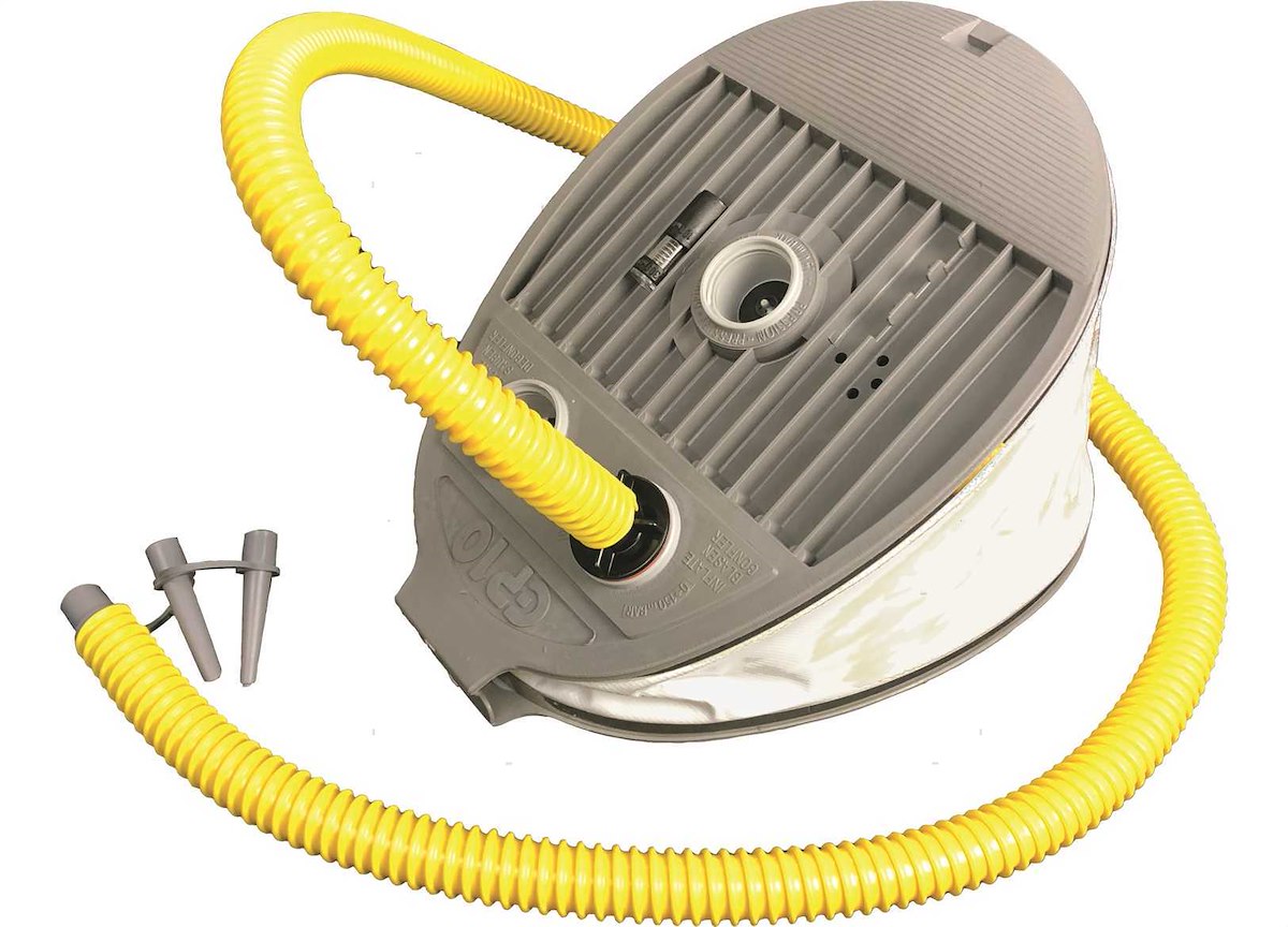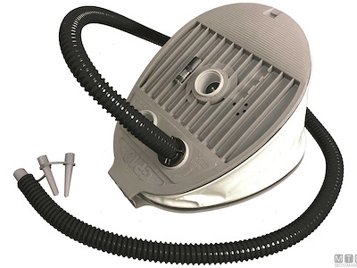 Gonfiatore a pedale GP10 a doppia camera che consente di raggiungere senza sforzo la pressione massima. Con indicatore visivo di pressione eccessiva e raccordi multipli. Dimensioni 35 x 25 x H8 cm.