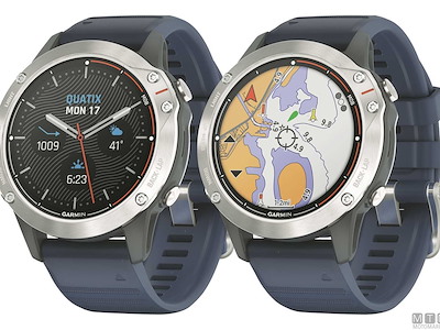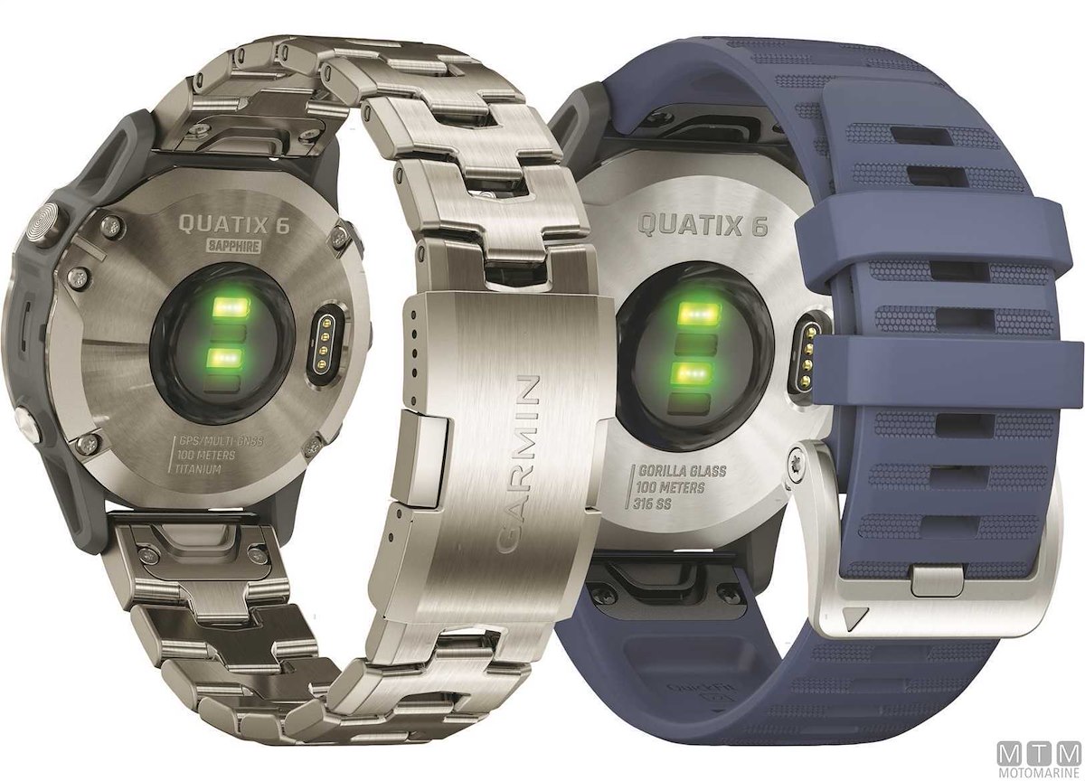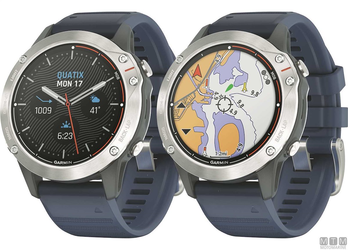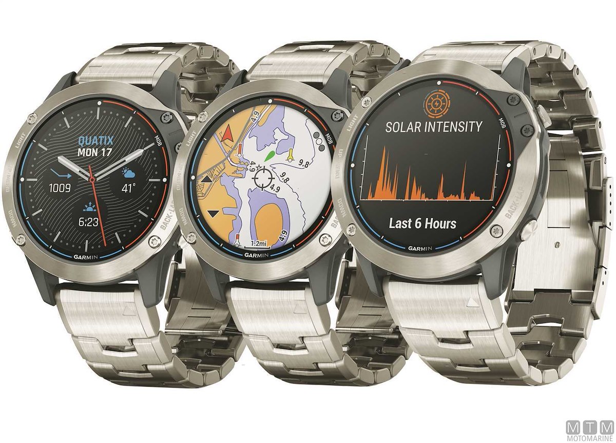 Orologio smartwatch Garmin Quatix 6 con ricevitore GPS, rete wireless e Bluetooth, si integra perfettamente con tutti i sistemi di bordo. Display da 1.3" antiriflesso e antigraffio e potente batteria ricaricabile. Dotato di barometro, altimetro, bussola e di tutte le funzioni per la nautica, vela e regata, collegamento smartphone per email e messaggi, profili multisport, rilevazione cardiaca al polso, sistema pagamenti contactless e molto altro ancora. Resistente all'acqua fino a 100 metri. La versione Titanium ha la lente in vero Zaffiro, la cassa e il cinturino in Titanio in aggiunta al normale in Silicone. La versione Solar ha la cassa e il cinturino in Titanio in aggiunta al normale in Silicone, inoltre è provvisto di celle solari che aumentano la durata della batteria.